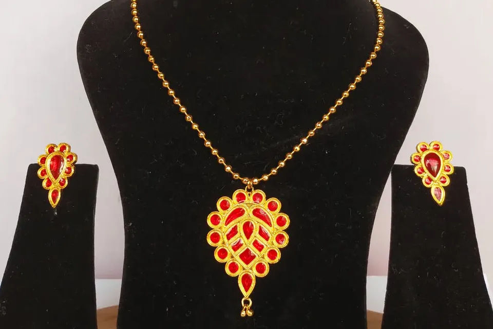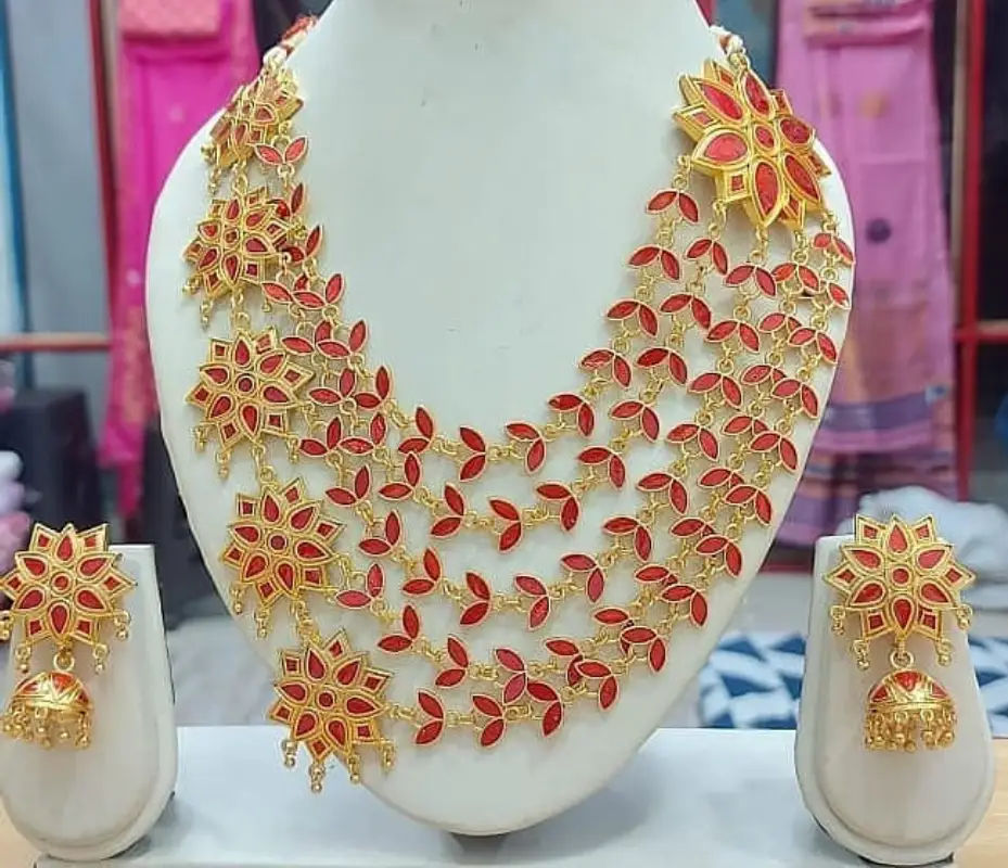 The earrings come in different shapes, from danglers to statement studs. It is very popular among Assamese women.