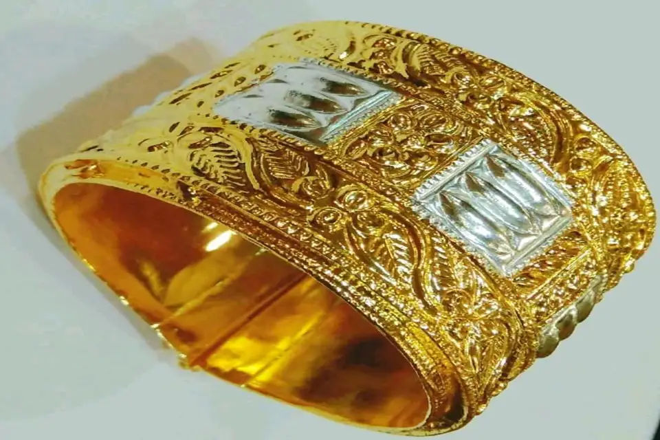 It is a statement bangle made of gold or silver. One of the most popular pieces of Assamese jewellery. Several designers have been inspired by its unique look and tried to incorporate it into other designs of handcuffs or bracelets.