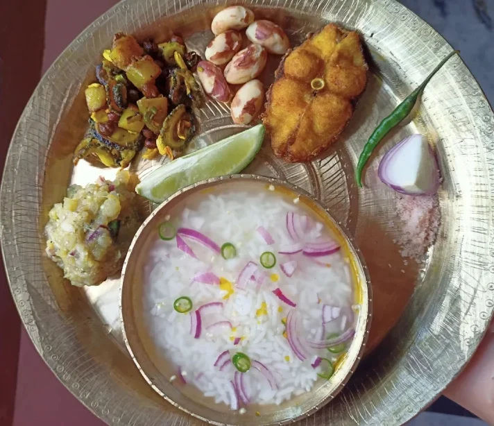 Served with mustard oil, salt, onion and chillies ; it is a traditional take on simple rice. Our favorite Aloo Pitika ( mashed potatoes ) is also served along with poita bhat.