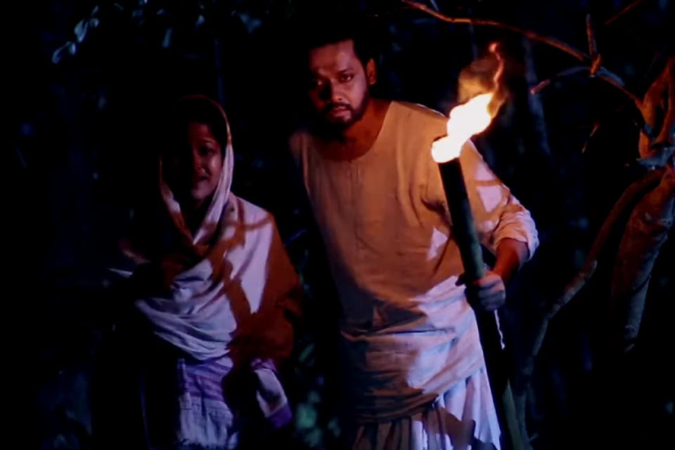As soon as Tejimola’s father left, the stepmother turned excruciatingly torturous towards her. She made her do all household chores and hit her brutally if she ever wished to go out to play with her friends. Tejimola’s stepmother is seen in a different setting at night. She steps out at night onto a boat, and the boat takes her to another place.